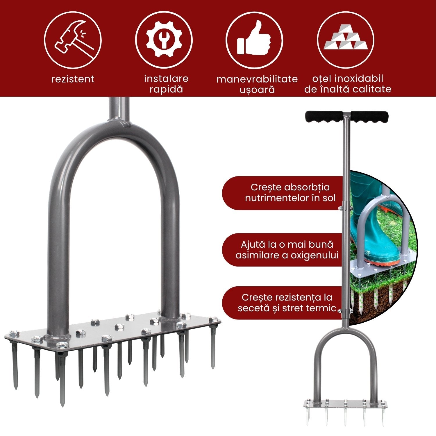 Nivelator Gazon Easy Level / XL, fabricat din oțel carbon