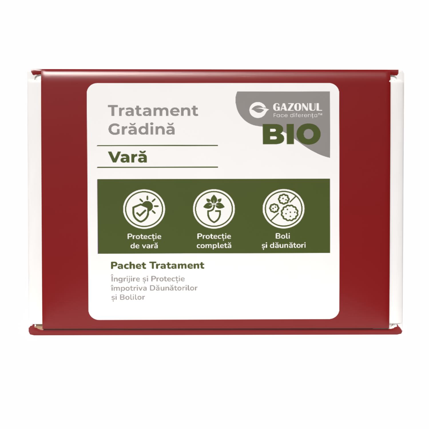 Pachetul conține un set complet de tratamente pentru grădină, pregătit de experții Gazonul pentru acoperirea sezonului de vară.